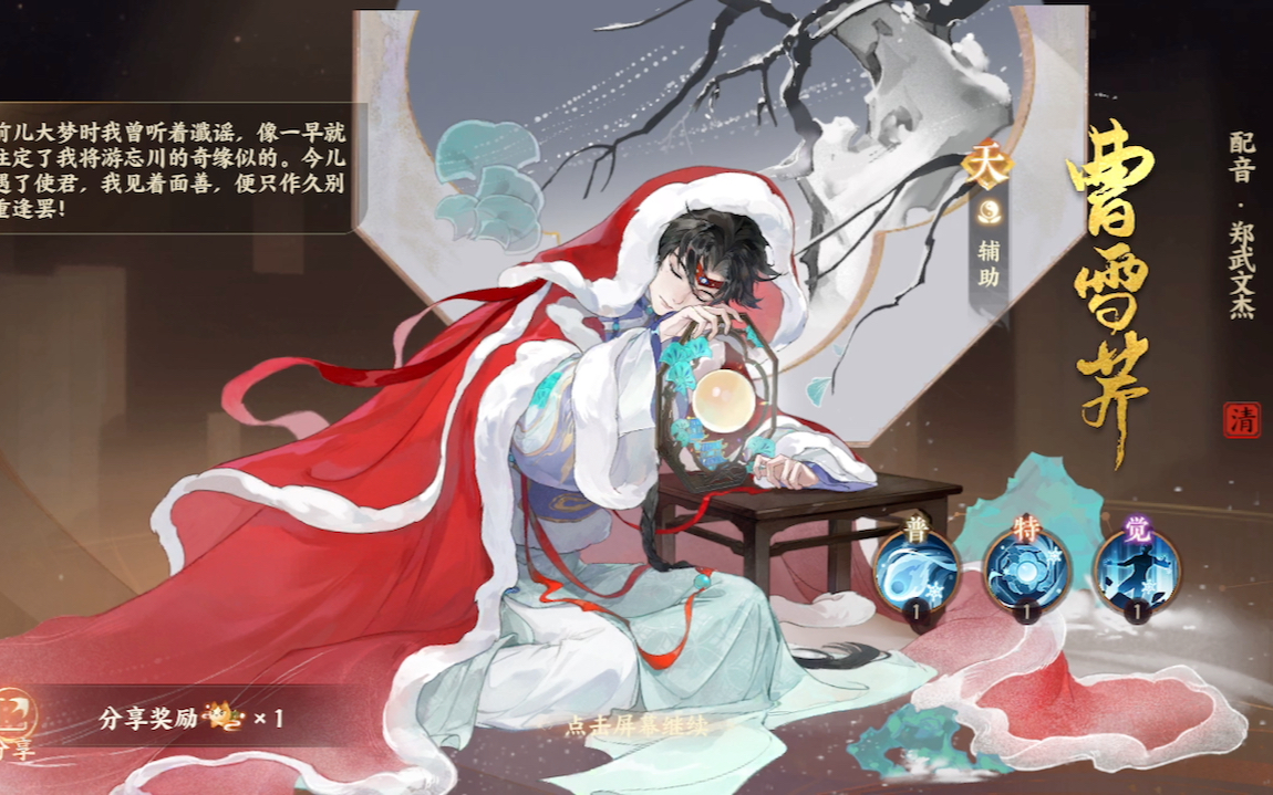 曹雪芹是是一个擅长给敌人添加减益的辅助天级名士,他的普攻和技能都可以给敌人添加好了歌。每层好了歌会让敌人降低百分之3的防...