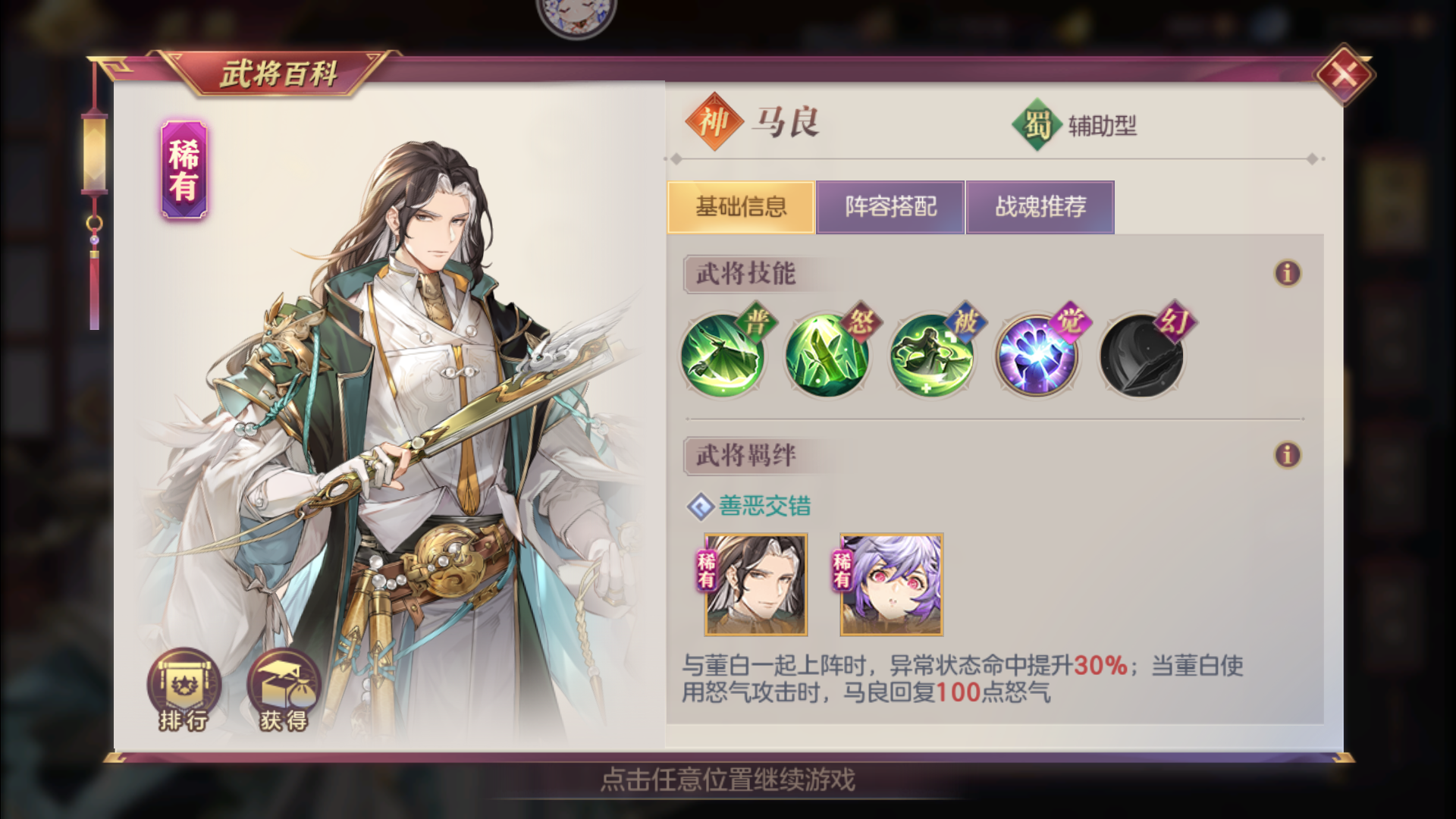 马良的怒攻会对所有敌人造成倍率较低的法伤,同时会给随机一到四个敌人添加两回合的止恶。止恶会让敌人无法使用怒攻,并且每次攻...