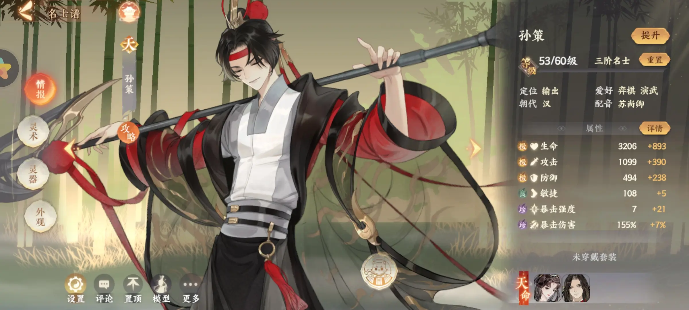 孙策是一个伤害倍率非常高的单体输出名士,他还可以通过损耗自己的生命来提升伤害,并在击败敌人后回血。较好的输出表现让他在各...